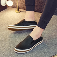 男鞋春季潮鞋2017新款防水皮面帆布鞋韩版百搭休闲鞋懒人小白鞋男