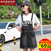 烟灰色牛仔背带裙女2017新款夏季短裙吊带字母宽松学生A字半身裙