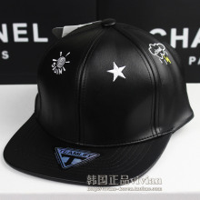 韩国进口正品代购新款PU皮质休闲百搭平沿帽原宿棒球帽子男女韩版