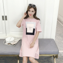 夏季韩版新款大码女装印花字母体恤衫纯棉宽松中长款短袖t恤裙女