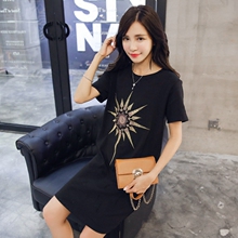 2017春装大码女装新款中长款短袖体恤衫上衣显瘦纯棉T恤裙女潮夏