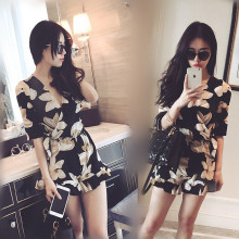 连体衣服女式夏季韩版潮女装大码宽松胖mm连身短裤雪纺休闲阔腿裤