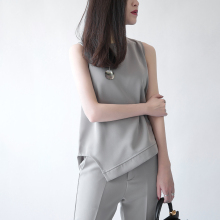 MONA春夏圆领宽松后拉链斜摆不对称纯色坎袖t恤不规则无袖背心女