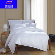 纯棉纯色宾馆酒店三四件套单双人1.8m床全棉床单旅馆纯白被套特价