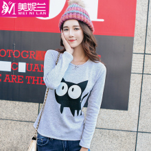 秋冬韩版卡通加绒加厚打底衫上衣学生长袖T恤女大码显瘦保暖体恤