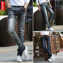 2016春季款青少年雪花浅灰色牛仔裤男韩版纯黑学生修身弹力小脚裤