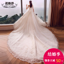 一字肩婚纱长拖尾韩式新娘齐地宫廷大拖尾奢华婚纱2017春夏季新款