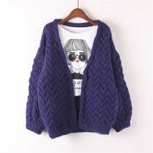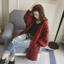 韩版秋装宽松显瘦大码粗毛线中长款灯笼袖毛衣女针织开衫外套上衣