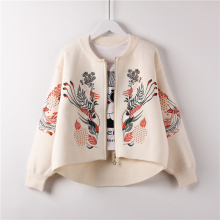 拉链针织开衫外套女短款2016秋装新品韩版学生毛衣宽松绣花棒球服
