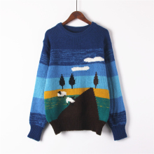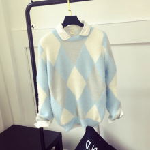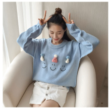 学院风套头毛衣女短款韩版卡通学生上衣宽松针织衫圆领冬装女打底