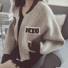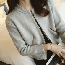 2016春秋季新款韩版针织长袖棒球服女短款圆领开衫百搭薄款外套潮