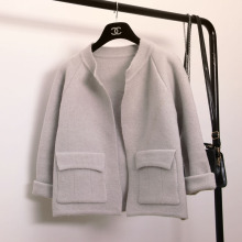 秋冬季韩版棒球服冬装短款针织毛衣宽松学生针织开衫女短外套加厚