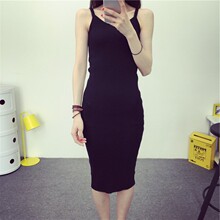 春秋季针织无袖过膝中长款连衣裙女打底包臀紧身修身裙连体裙子女