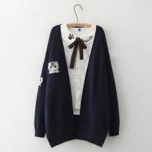 日系软妹毛衣原宿风小清新纯色针织开衫秋冬季外套女上衣中长款