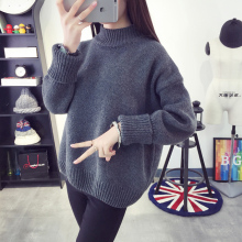 韩版女士套头纯色针织打底衫外穿学生半高领宽松短款毛衣女秋冬潮