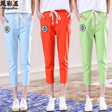 2016夏款八分女裤哈伦裤亚麻小脚裤宽松棉麻休闲七分裤松紧系绳腰