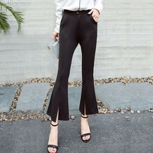 夏季韩国开叉喇叭裤女九分裤薄款西装布高腰显瘦阔腿裤黑色休闲裤