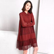 雪纺衬衫女长袖2017春装新款裙大码宽松蕾丝拼接连衣裙中长款上衣
