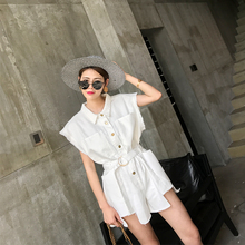 牛仔裤女夏季2017新款宽松无袖连衣裤 韩版高腰连体裤短裤阔腿裤