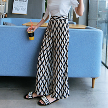 2017夏季新款几何图案百搭阔腿裤垂顺高腰休闲裤9分裤