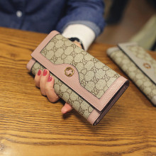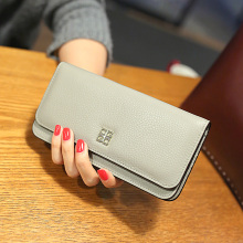 2016新款韩版大牌真皮长款女钱包搭扣牛皮卡位皮夹手机手拿钱夹潮