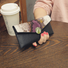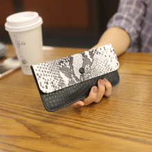 2017新款蛇纹女士长款钱包超薄真皮欧美搭扣皮夹女牛皮卡位钱夹潮