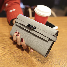 2017新款韩版真皮长款钱包女搭扣简约时尚大钞卡位牛皮钱夹手包潮