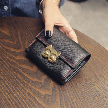 2016新款韩版简约短款真皮钱包女士搭扣牛皮小钱包钱夹卡包皮夹潮