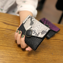 2017新款欧美大牌蛇纹真皮短款小钱包女士三折牛皮卡包皮夹钱夹潮