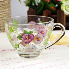 韩国正品加厚玻璃杯/印花把手杯/耐热水杯/把杯凉水杯茶杯咖啡杯