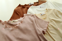 夏季。(自制免邮)人手必入奶油色木耳边圆领+人棉短袖t恤Tee女