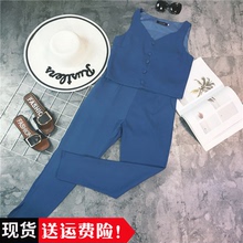 安娜nana2017夏装新款气质简约背心马甲裤子两件套装时尚休闲女装