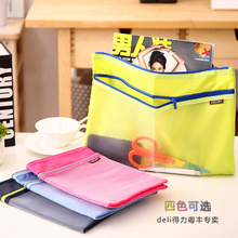 deli得力5841 柔质拉链袋 A4透气文件袋 A4双层拉边袋 资料袋