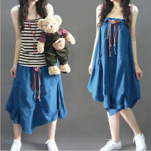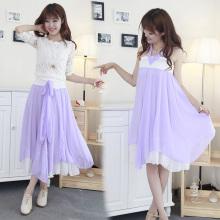 夏季热销两穿裙百褶休闲半身长裙不规则吊带连衣裙波西米亚沙滩裙
