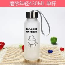 兔斯基玻璃杯 430ML单杯 创意便携杯子防漏耐热磨砂运动茶杯包邮