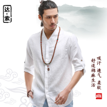 中国风中式立领亚麻衬衫男长袖 春夏季薄款棉麻衬衣麻料麻布衣潮