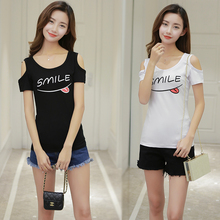 2017时尚百搭性感小衫女漏肩上衣韩版潮学生夏装修身短袖T恤女夏