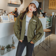 2017春秋军绿色工装风衣外套长袖宽松灯笼袖短风衣夹克上衣学生女