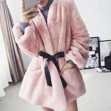 MT STUDIO定制 2017冬季新款修身显瘦蝴蝶结系带獭兔毛仿皮草外套