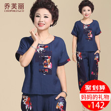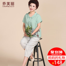 中年妈妈夏装棉麻两件套装2017新款40岁50短袖衬衫中老年女装上衣