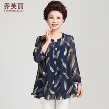胖妈妈春秋装雪纺衬衫上衣七分袖T恤中老年女装夏装大码衬衣50岁
