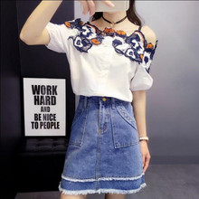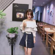 夏装新款时尚套装裙女装一字领露肩显瘦上衣牛仔半身连衣裙两件套