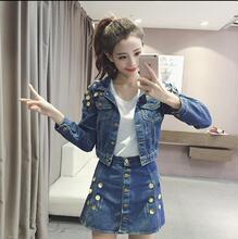 2017春夏新韩版气质连衣裙女装牛仔外套a字短裙两件套时尚套装裙
