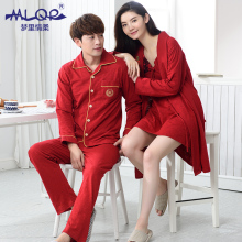 梦里情柔2016秋冬情侣睡衣纯棉长袖大红新婚男女家居服可外穿睡裙