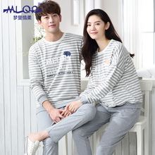 梦里情柔2016秋季男女纯棉睡衣情侣长袖全棉家居服套装可外穿