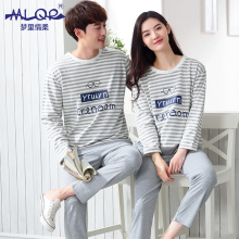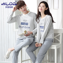梦里情柔2016秋季情侣纯棉长袖睡衣条纹韩版宽松男女家居服可外穿
