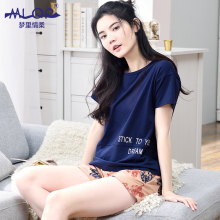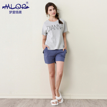 梦里情柔2016春夏女纯棉短袖睡衣休闲全棉简约字母女家居服套装