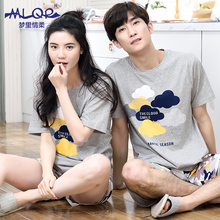 梦里情柔2017夏季情侣休闲睡衣纯棉短袖男女运动薄款家居服可外穿