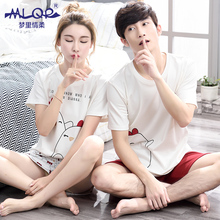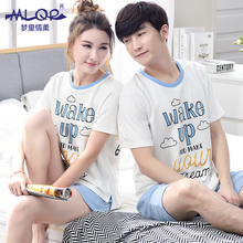 梦里情柔夏季情侣纯棉薄款睡衣短袖男女时尚运动家居服套装可外穿