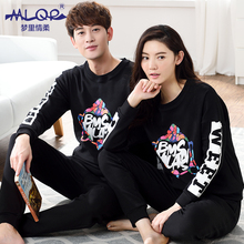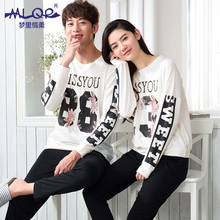 梦里情柔2016情侣纯棉睡衣长袖圆领字母韩版男女家居服可外穿套装